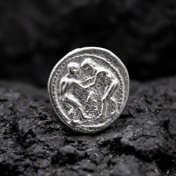 Ancient Greek Hercules Wrestling Signet Coin Ring 925 Etsy